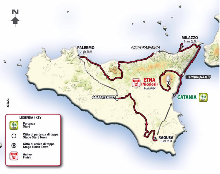 Si parte. La Sicilia torna in sella. Dopo 42 anni riecco il Giro di Sicilia, dal 3 al 6 aprile, con quattro tappe per un totale di 708 chilometri, che toccheranno le province di Messina, Caltanissetta, Ragusa, Catania, Palermo. Il nuovo appuntamento italiano sarà valido come quarta prova della Ciclismo Cup 2019. Si comincia oggi lungo il tragitto Catania-Milazzo, poi Capo d’Orlando-Palermo, quindi Caltanissetta-Ragusa e, infine, Giardini Naxos-Etna (Nicolosi). Non è tutto: grazie all’accordo triennale tra la Regione siciliana e Rcs Sport oltre a Il Giro di Sicilia, l’isola ospiterà anche tre tappe del Giro d’Italia nel 2020 e la Grande Partenza della Corsa Rosa nel 2021. Oggi, dunque, la prima tappa, Catania-Milazzo, 165 chilometri, quasi sempre pianeggianti a esclusione della scalata di Colle San Rizzo dopo Messina. Prima parte lungo la costa con lievi saliscendi e il breve intermezzo in salita a Taormina. Gpm a Colle San Rizzo dopo Messina e quindi avvicinamento pianeggiante su strade larghe fino agli ultimi 10 chilometri interamente nella penisola di Milazzo.