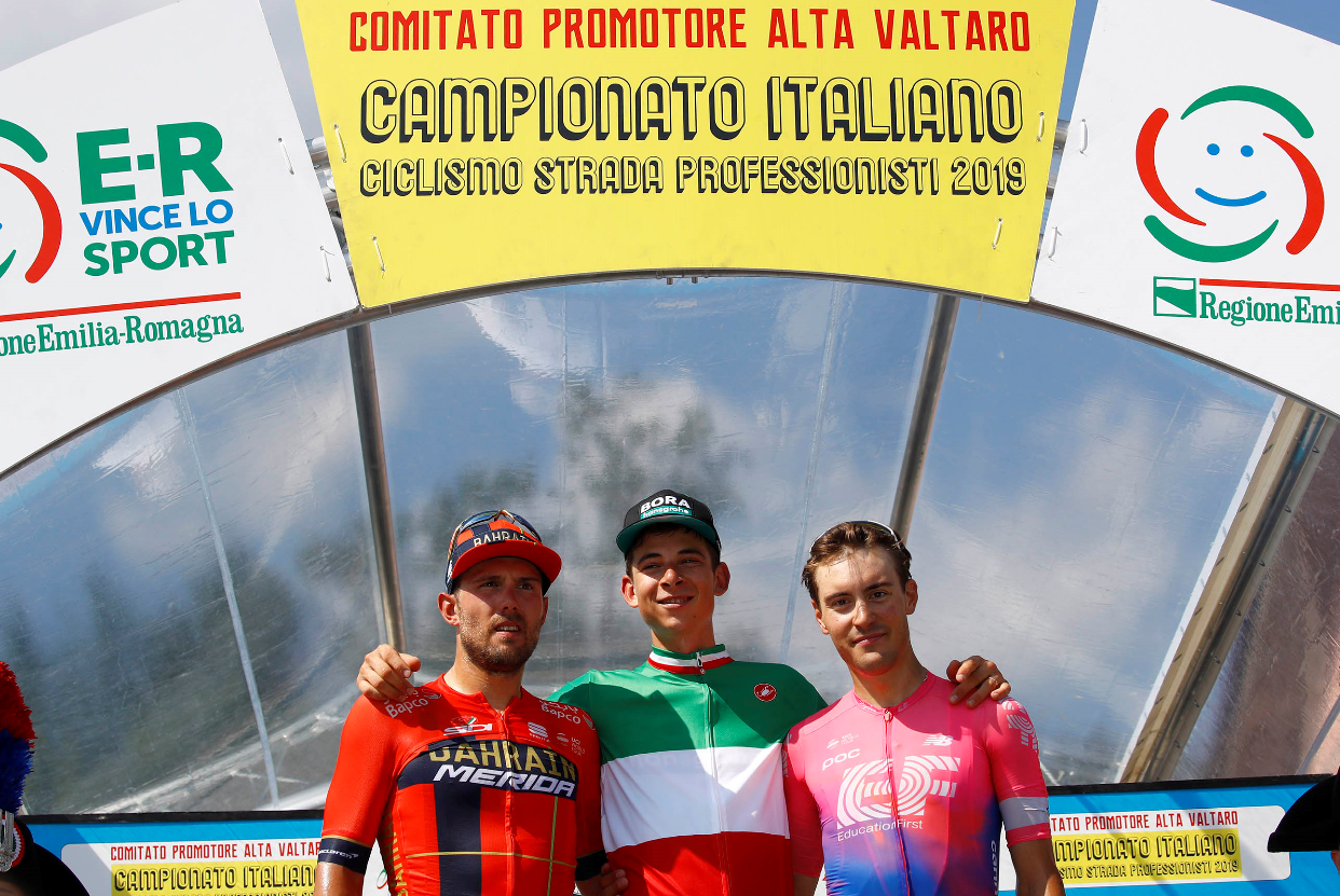 Davide Formolo, veronese classe ’92 della Bora – Hansgrohe, si aggiudica il campionato italiano su strada dei professionisti in Alta Valtaro, nel Parmense, al termine di una strepitosa impresa solitaria di oltre trenta chilometri. Il tricolore 2019 era valido anche come settima prova della Ciclismo Cup 2019, che assegnava i punteggi per le classifiche individuali come previsto dal regolamento di questa stagione. A seguire verranno resi noti i nuovi punteggi Sul traguardo di Compiano (posto in località Sugremaro) ha preceduto di una manciata di secondi un gruppetto regolato dal bresciano Sonny Colbrelli (Bahrain – Merida). Terzo Alberto Bettiol (EF Education First), che ha completato così un grande podio per la rassegna tricolore curata sotto l’aspetto organizzativo dal Gruppo Sportivo Emilia con “Comitato Promotore Alta Valtaro”.