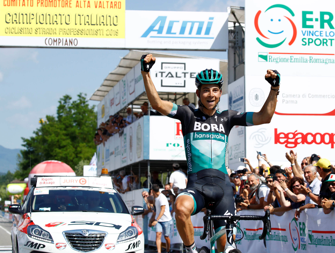 Davide Formolo, veronese classe ’92 della Bora – Hansgrohe, si aggiudica il campionato italiano su strada dei professionisti in Alta Valtaro, nel Parmense, al termine di una strepitosa impresa solitaria di oltre trenta chilometri. Il tricolore 2019 era valido anche come settima prova della Ciclismo Cup 2019, che assegnava i punteggi per le classifiche individuali come previsto dal regolamento di questa stagione. A seguire verranno resi noti i nuovi punteggi Sul traguardo di Compiano (posto in località Sugremaro) ha preceduto di una manciata di secondi un gruppetto regolato dal bresciano Sonny Colbrelli (Bahrain – Merida). Terzo Alberto Bettiol (EF Education First), che ha completato così un grande podio per la rassegna tricolore curata sotto l’aspetto organizzativo dal Gruppo Sportivo Emilia con “Comitato Promotore Alta Valtaro”.
