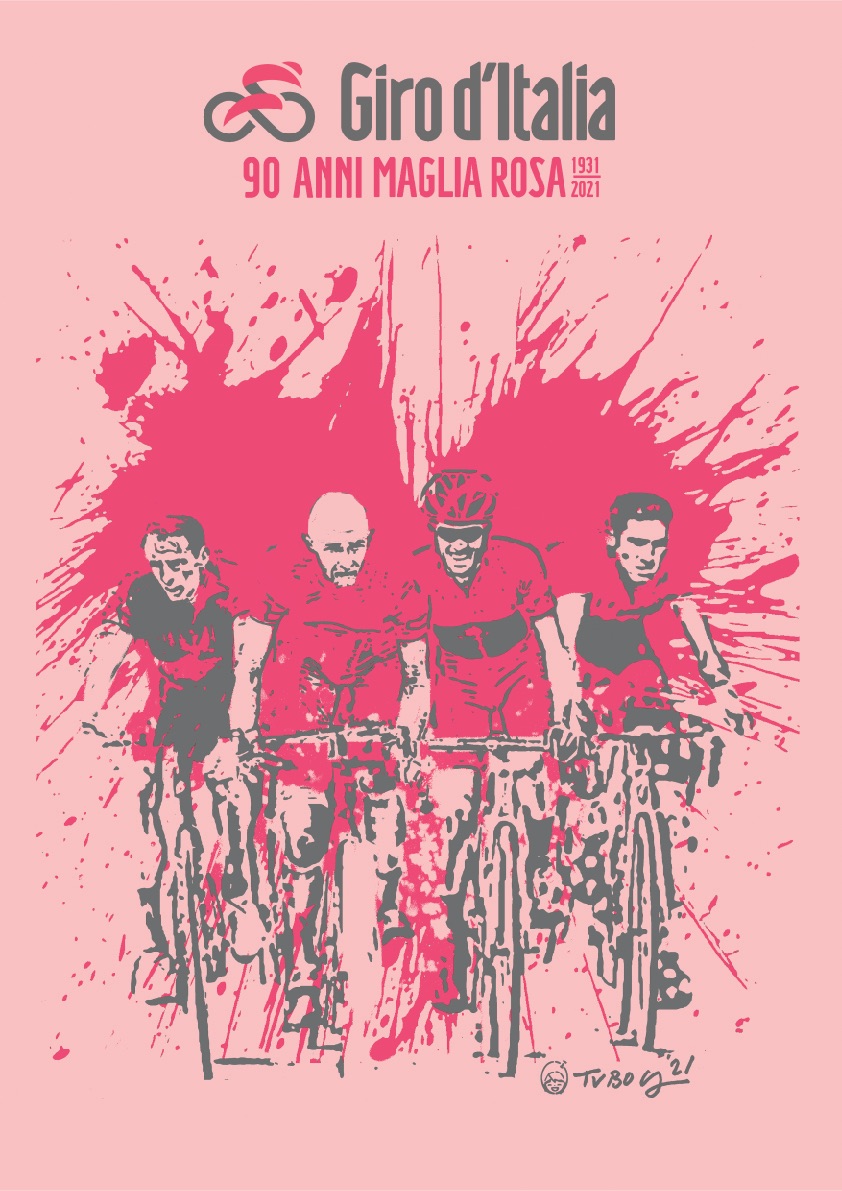 Il 9 maggio del 1931, il direttore della Gazzetta dello Sport Armando Cougnet presentò ufficialmente la maglia rosa come nuovo simbolo che avrebbe contraddistinto il leader della classifica generale, sulla falsariga di quanto avveniva già da più di un decennio in Francia con il Tour. Il colore era appunto rosa, riprendendo la sfumatura del quotidiano sportivo. Per l’occasione, quest’anno RCS Sport ha promosso il Manifesto del Giro d’Italia 2021, realizzato dall’artista italiano TVBOY, in occasione del contest lanciato ad hoc: nel Manifesto sono presenti i 4 finalisti tra le Maglie Rosa più amate: Coppi, Merckx, Pantani e Contador.
