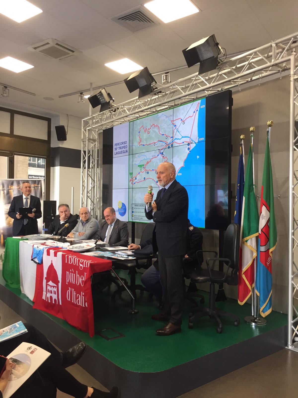 A fare gli onori di casa è stata l’Assessore Regionale alla Comunicazione, Formazione, Politiche Giovanili e Culturali, Sport, Ilaria Cavo, che nel corso del proprio intervento ha dichiarato: “Il Trofeo Laigueglia è il tradizionale appuntamento che apre la stagione del ciclismo in Liguria, – afferma Ilaria Cavo, assessore allo sport di Regione Liguria -una manifestazione cresciuta di anno in anno che richiama tanti appassionati di questo sport anche da fuori e che ha visto nel proprio albo d’oro nomi che si sono successivamente affermati fra i grandi di questa disciplina. Regione Liguria, mediante un accordo di programma col Comune di Laigueglia, la Federazione Ciclistica Italiana e la Lega del Ciclismo Professionistico, sarà lieta di sostenere e supportare il Trofeo che unisce a un importante valore sportivo una forte valenza turistica, confermandosi così come uno degli eventi sportivi di maggior richiamo dell’intera Regione. Analogo accordo sarà sottoscritto con la US Pontedecimo, promotore del Giro dell’Appennino. Questa capacità di fare rete mettendo a sistema i principali eventi ciclistici regionali viene valorizzata anche quest’anno con il Challenge Liguria, alla sua seconda edizione, il gemellaggio fra il Trofeo Laigueglia e il Giro dell’Appennino che verrà sancito dalla maglia consegnata al corridore che avrà complessivamente fatto meglio nelle due gare”