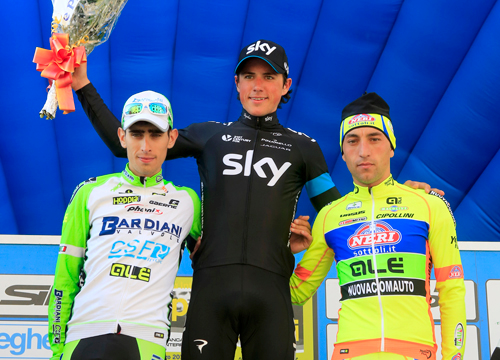 Nella seconda tappa, la più dura, ancora una vittoria Sky con Kennaugh che batte il compagno di fuga Francesco Bongiorno (Bardiani CSF). ll gruppo, preceduto da Rabottini e Cataldo, a quasi un minuto.