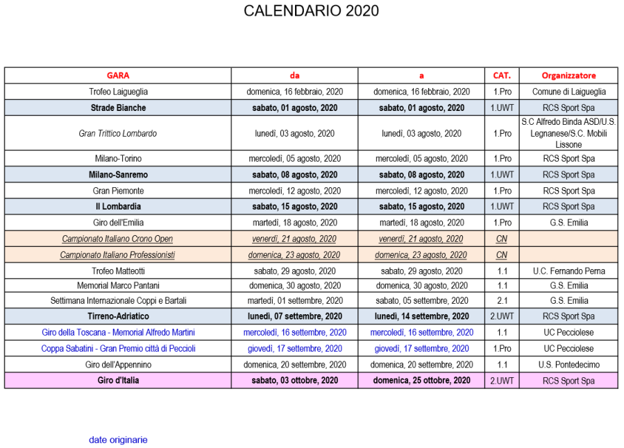 Presidente abbiamo visto tanti cambi data nelle Classiche, con la Milano-Sanremo spostata in agosto dall’8 al 22 e 15. Cosa è successo?