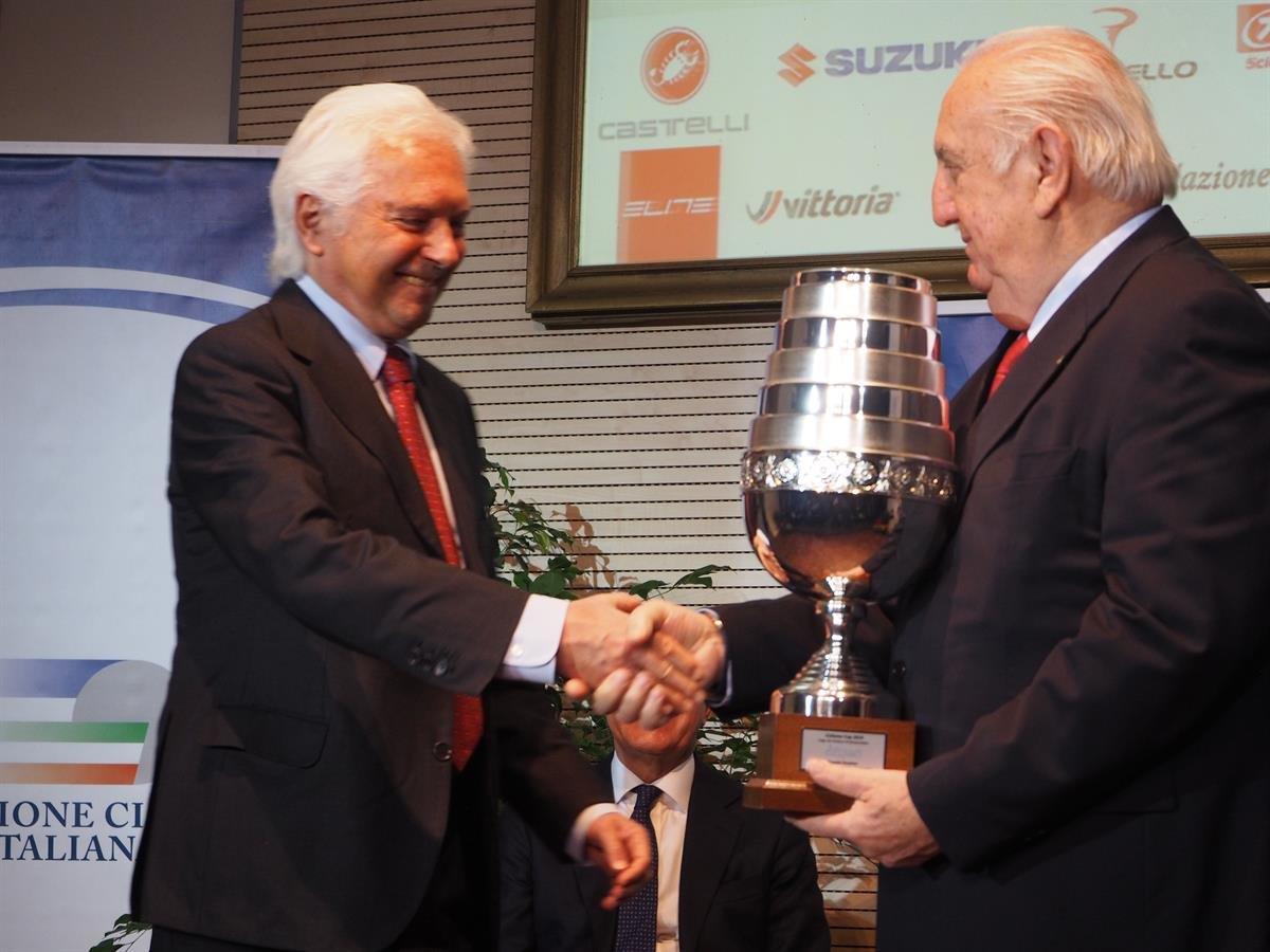 L’occasione ha fatto da teatro anche alla premiazione della Ciclismo Cup 2019 da parte della Lega del Ciclismo Professionistico al Team Androni Giocattoli – Sidermec, vincitore classifica squadre; a Giovanni Visconti, atleta vincitore della classifica individuale e Fausto Masnada, atleta vincitore della classifica giovani U25. Al team manager Gianni Savio il trofeo è stato consegnato da Amedeo Colombo, Consigliere della Lega del Ciclismo Professionistico.
