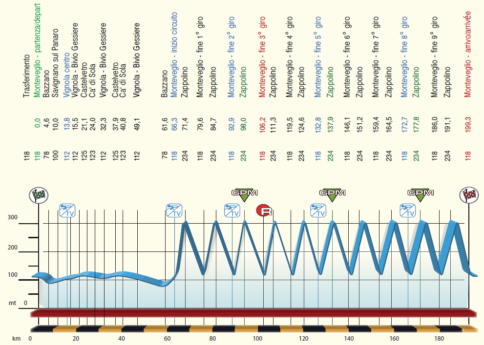 Lo Zappolino farà parte di un circuito di 1,6 chilometri che i corridori dovranno percorrere ben dieci volte, con l’arrivo che sarà posto a Monteveglio al termine della discesa dallo Zappolino, uno strappo che sulla carta può sembrare facile, ma che negli ultimi anni è sempre risultato decisivo. I velocisti, soprattutto quelli più resistenti in salita proveranno a stringere i denti per giocarsi la tappa allo sprint, ma negli ultimi anni la corsa ha spesso sorriso ai finisseur. Al termine dela Gp Beghelli verranno rese note le nuove classifiche aggiornate della Ciclismo Cup, a squadre e individuali.
