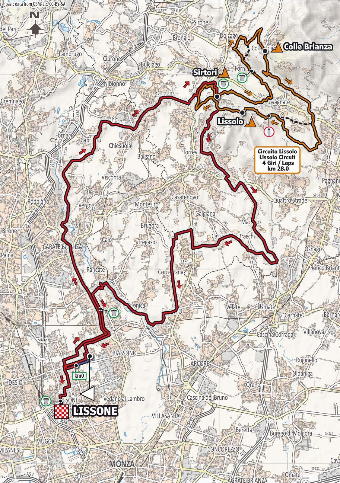 La gara interesserà il centro di Lissone solo alla partenza e all’arrivo, svolgendosi per il resto in Brianza e trovando il suo cuore, come da tradizione, nel Circuito del Lissolo, che si percorrerà quattro volte. Ogni giro del Circuito misura 28 chilometri, vanta le asperità di Sirtori, Colle Brianza e appunto Lissolo, un saliscendi secco per un dislivello complessivo di 1.836 metri.