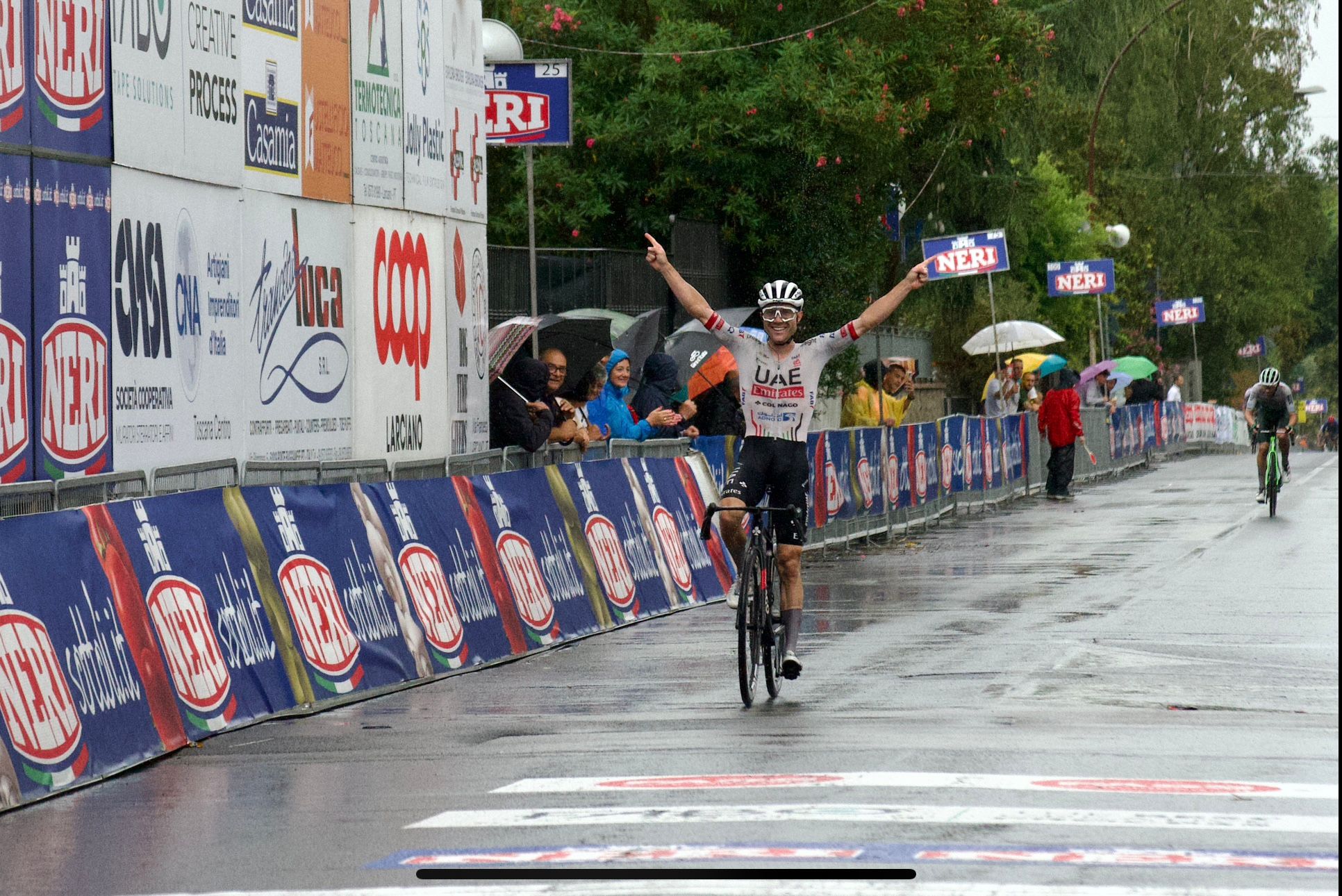 L’accelerazione, che riportava il plotone a distanza di sicurezza dai battistrada, veniva seguita dall’attacco in testa alla corsa di Huyet e Calzoni che approcciavano l’ultimo giro con un vantaggio leggermente superiore al minuto. Era allora l’UAE Team Emirates a prendere in mano decisamente le redini dell’inseguimento, andando ad annullare il tentativo dei fuggitivi. Sul tratto più duro dello strappo del Fornello partiva quindi Marc Hirschi, con un’azione decisa che lo portava a scollinare San Baronto con 24″ sui diretti inseguitori, Javier Romo e Christian Scaroni, e 30″ su ciò che rimaneva del gruppo. In discesa arrivava il forcing degli inseguitori ma, a causa della strada bagnata, Scaroni terminava a terra dicendo addio alle sue chances di vittoria. Romo non rimaneva da solo per troppo tempo, tanto che alle sue spalle rientrava, e successivamente partiva al contrattaco, l’uruguaiano Guillermo Tomas Silva. Il tentativo del portacolori della Caja Rural-Seguros RGA era tardivo, con Hirschi che aveva tutto il tempo di godersi l’applauso del pubblico di Larciano, giunto al traguardo nonostante il meteo proibitivo, celebrando il suo sesto successo stagionale, settantesimo per la UAE Team Emirates. A 4″ Guillermo Thomas Silva coglieva uno storico primo podio per l’Uruguay mentre a 9″ il vincitore dell’edizione 2022 Diego Ulissi precedeva Javier Romo completando la festa del team emiratino.