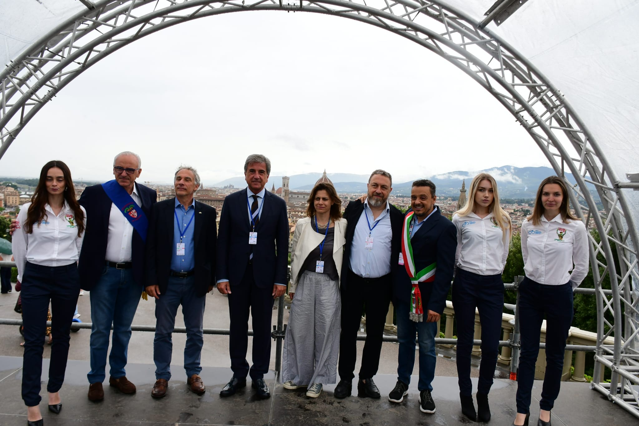 (Il Presidente di Lega, Roberto Pella, con alcuni Consiglieri e alcune autorità, a Firenze prima della prova maschile su strada)
