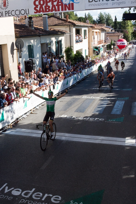 Coppa Sabatini 2015: Eduard Prades festeggia la vittoria – 8 ottobre 2015 – foto Antonella Albani